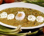 En otra cazuela amplia pon agua a cocer con un chorro de vinagre. Cuando empiece a hervir, baja la temperatura del fuego y escalfa los huevos. Sirve el guiso de habas en una fuente y coloca encima los huevos escalfados. Espolvorea con perejil picado.